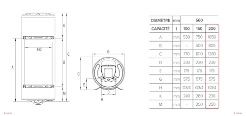 Ariston INITIO 200L – Vertical Wall Mounted Electric Water Heater – Armoured Resistor – Designed and manufactured to be installed in France.