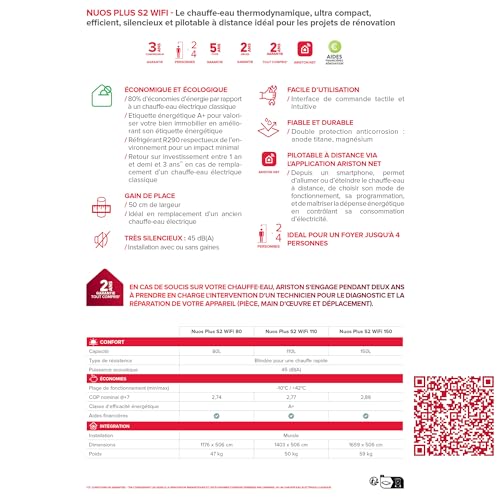 - Thermodynamic water heater: ultra-compact and remotely controlled via the Ariston Net app; ideal for renovation and control of energy consumption at any time