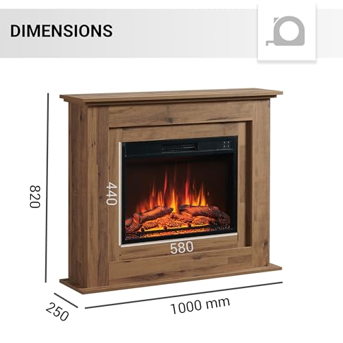 • DÉTAILS : Dimensions : Manteau de cheminée : 820 x 1000 x 250 mm (H x L x P). Dimensions de la fenêtre de la cheminée : 583 x 440 cm (H x L). Aucun autre matériel de montage n’est nécessaire, ce qui garantit une construction rapide et simple.