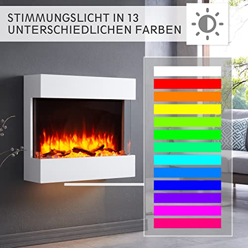 BALDERIA cheminée électrique Alva | Foyer électrique Mural avec Effet de Flammes 3D | Chauffage 2000W, éclairage LED | Cheminée à Fixation Murale avec télécommande, minuteur &…