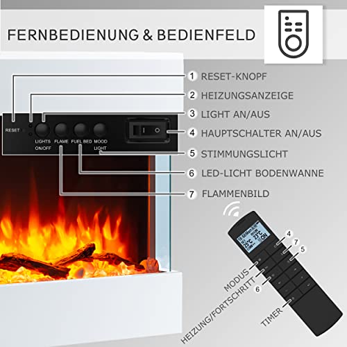 - TÉLÉCOMMANDE : Avec la télécommande fournie, l’effet de flamme 3D, l’éclairage LED, le chauffage, la température, la minuterie et la programmation peuvent être facilement ajustés. Le thermostat régule automatiquement la température de chauffage.