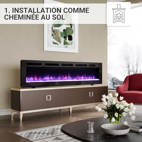 - Remote control: With the included remote control, the 3D flame effect, LED lighting, heating, temperature, timer and programming can be easily adjusted. The thermostat automatically regulates the heating temperature.