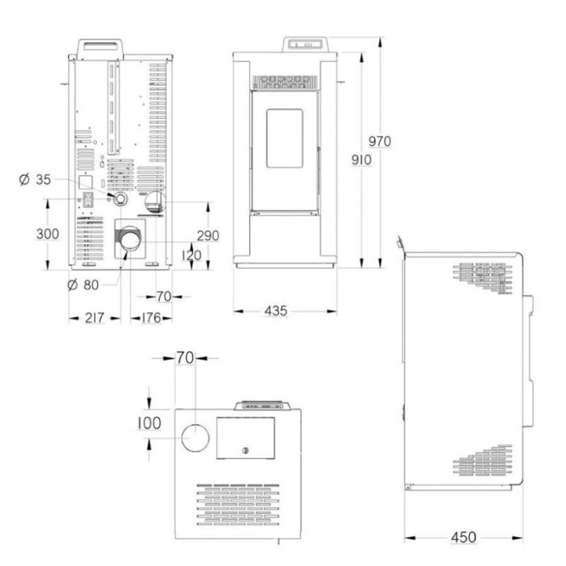 - Poêle étanche : Installation possible en sortie façade, sortie toiture et au-dessus du faîtage. Conduit non inclus dans cette offre.