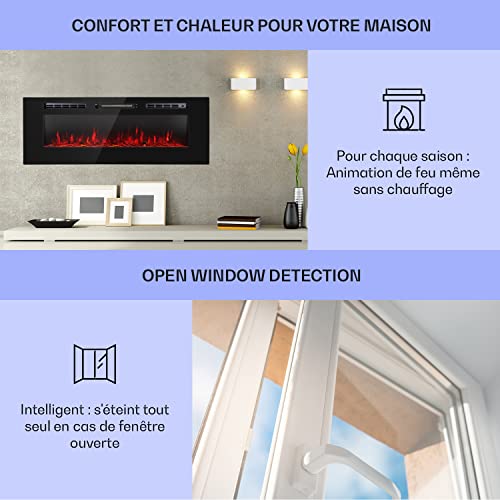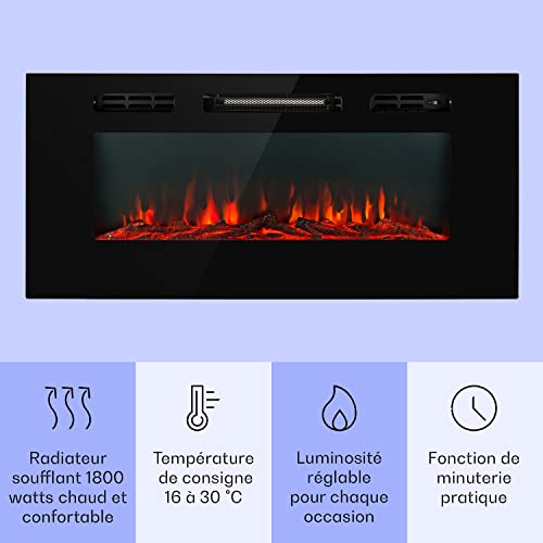 Klarstein Cheminée Electrique Encastrable, Chauffage Electrique de 1800W, Fausse Cheminée Decorative Murale avec Effet Flamme en LED, Télécommande Inclus, Programmable,…