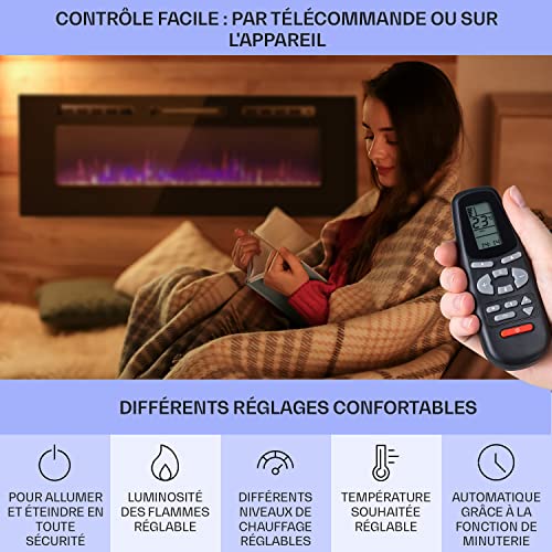 - AFFICHAGE LED ET ÉCONOMISEUR D’ÉNERGIE : La cheminée electrique avec un effet de flammes réalistes baigne votre pièce dans une lumière chatoyante, tout comme une vraie cheminée et tout en ayant une consommation d’énergie faible.